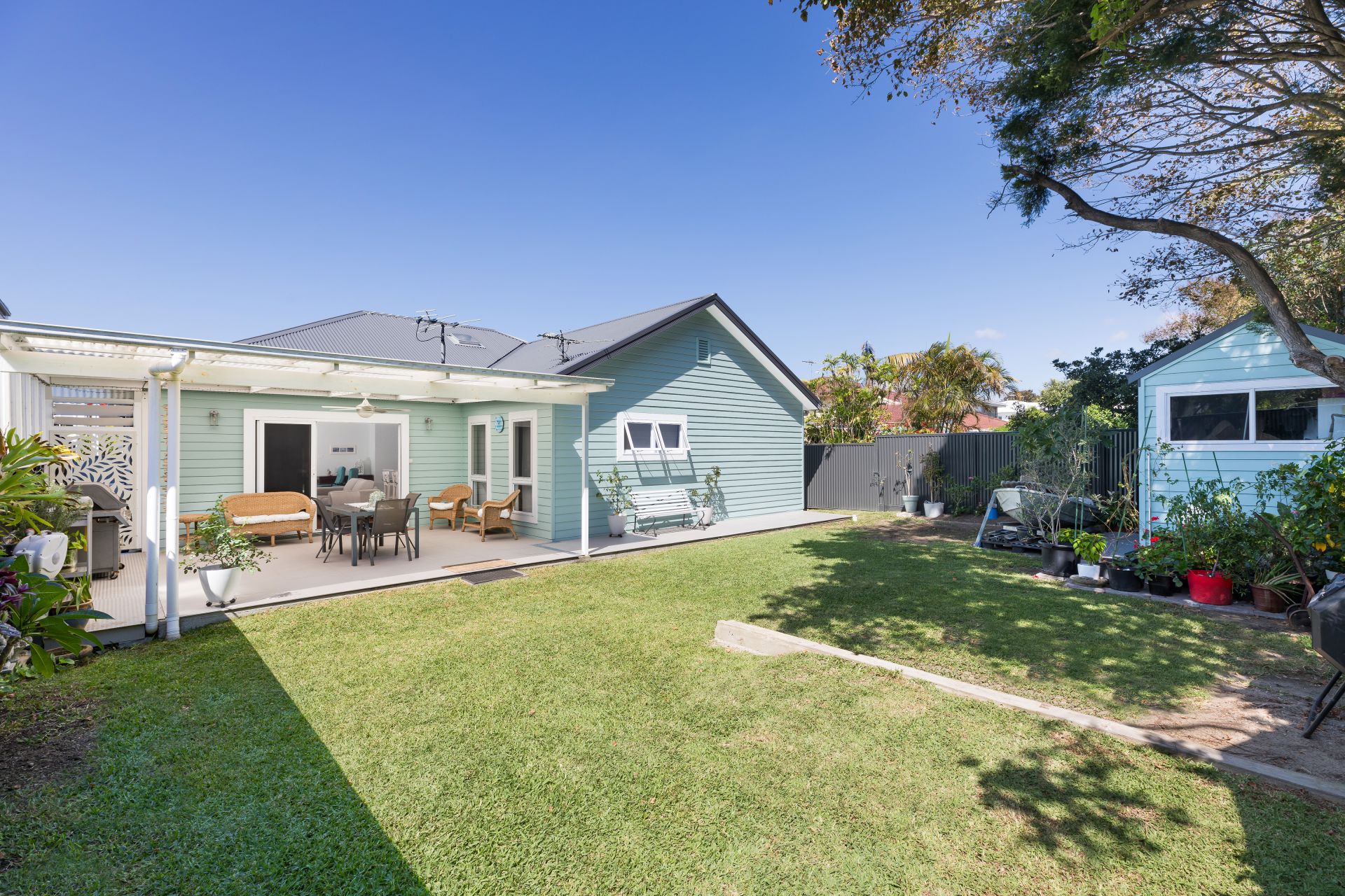Providing the perfect lifestyle package for young families or downsizing empty nesters with all the hard work already done, this beautiful owner builder's home showcases an abundance of comfort, privacy and flexibility in a sought-after locale. Warm and welcoming upon entry with a seaside aesthetic, the presentation is immaculate. The desirably sunny west facing rear yard, versatile single level layout, soaring ceilings, solid Blackbutt timber floors, and effortless flow to the all-weather alfresco entertaining area and private backyard create a peaceful sanctuary that is ready for immediate enjoyment.