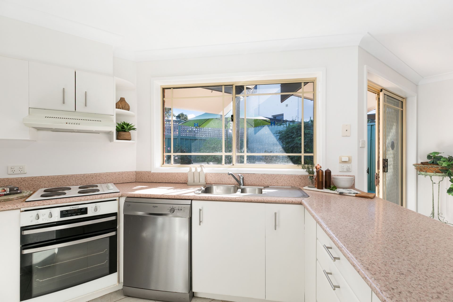 - Neat kitchen offers plenty of storage and bench space