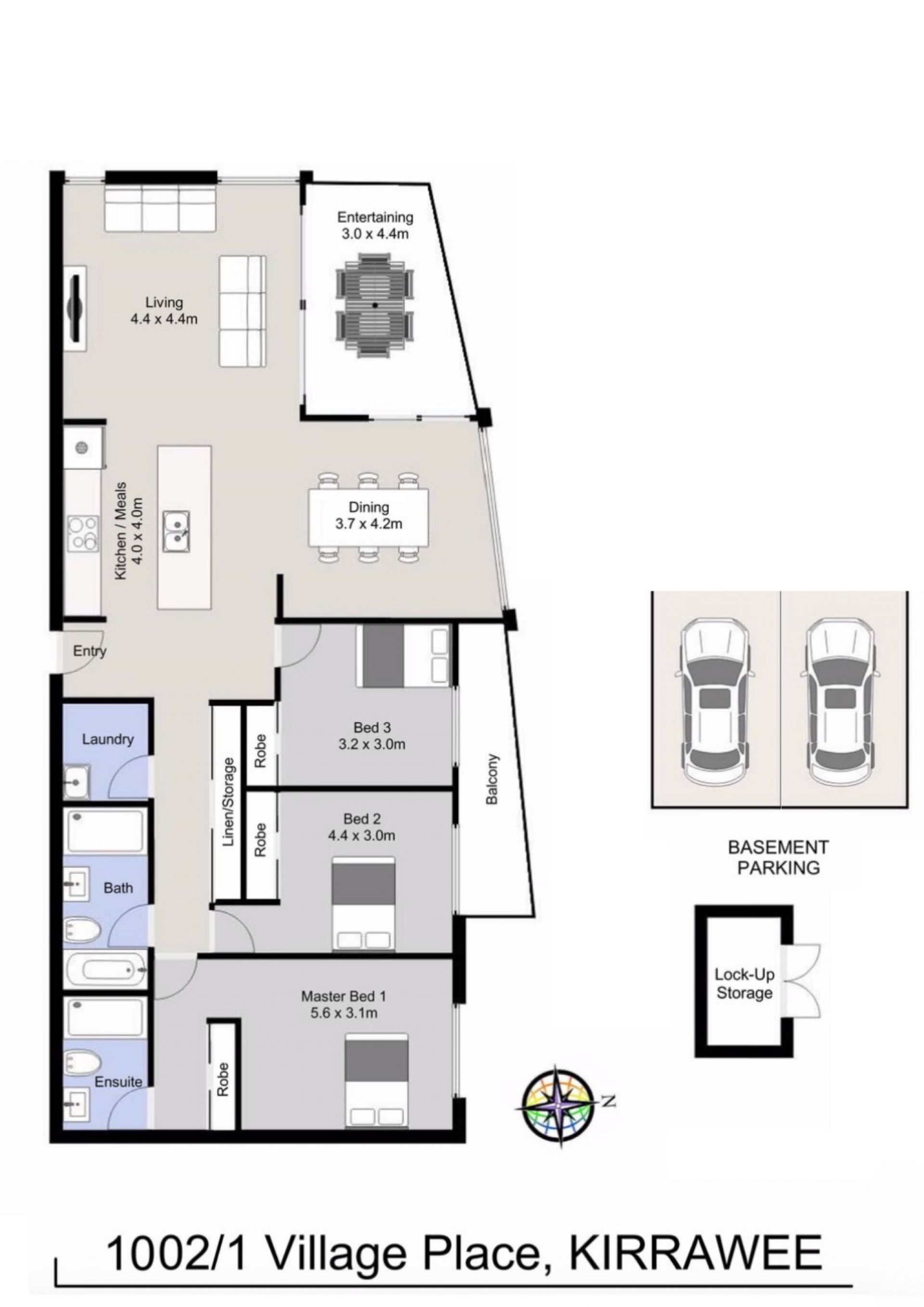 Size: 137sqm apartment + 30sqm car spaces + storage cage