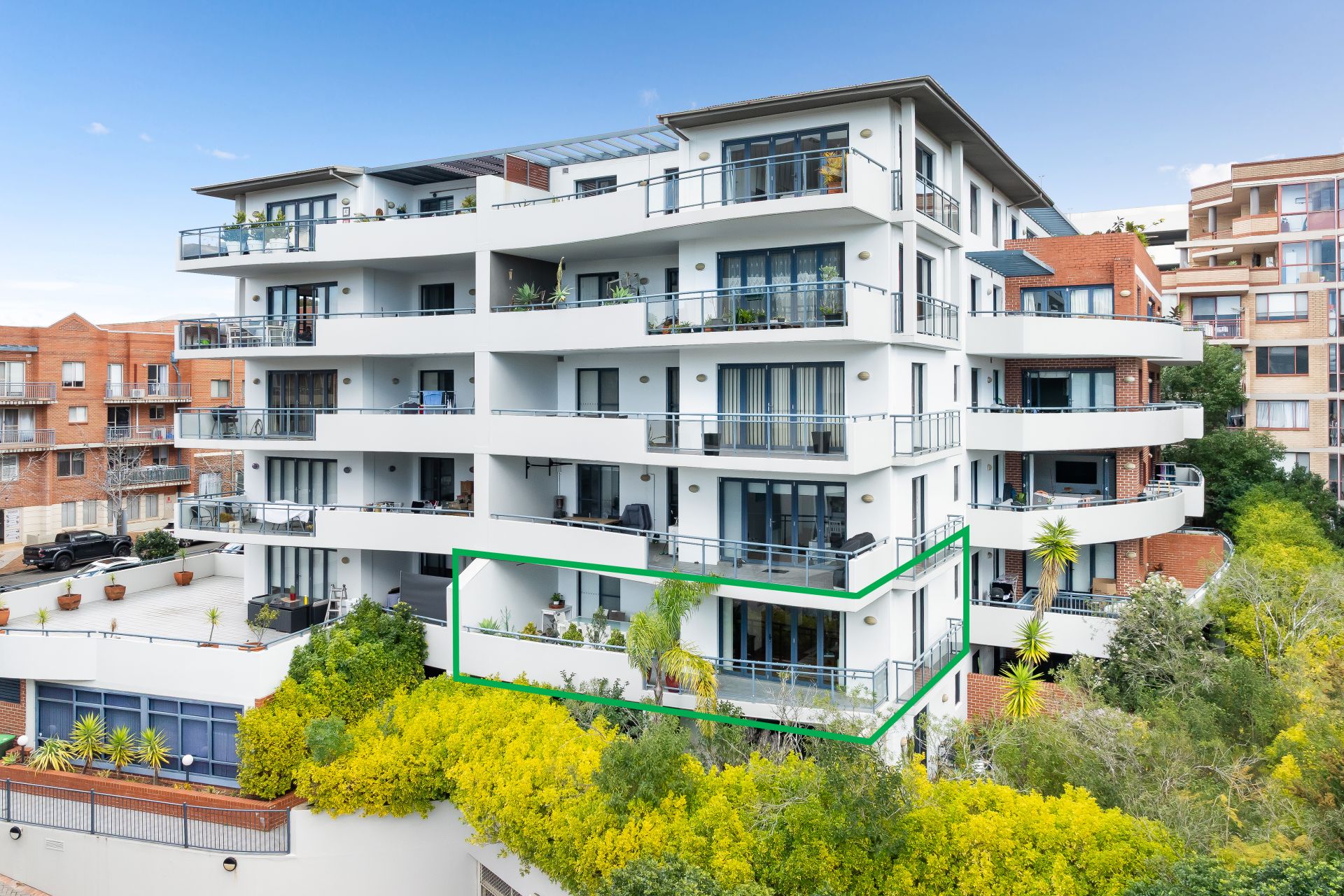 The curved balconies of the façade, lush landscaping and cul-de-sac location add to the desirability of this spacious apartment with a well-considered floor plan and lift access. In addition, popular Westfield shopping precinct, medical facilities, Miranda Railway Station, public bus transport, schools, restaurants and cafes are all within easy walking distance.